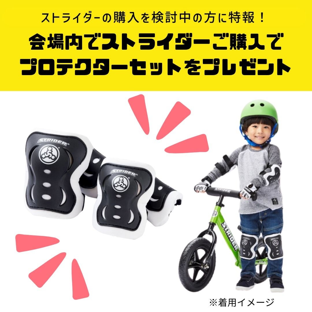 そしてなんと、会場内でストライダーをご購入いただくと「肘・膝のプロテクター2点セット」をプレゼント。