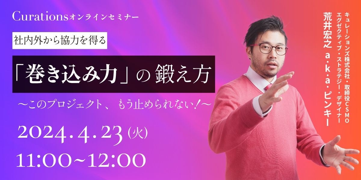 顧客企業のビジネス変革を成功に導くキュレーションズ株式会社(本社:東京都渋谷区、代表取締役社長:根本隆之、以下当社)は、『社内外から協力を得る「巻き込み力」の鍛え方 〜このプロジェクト、もう止められない!〜』を2024年4月23日(火)に開催いたします。