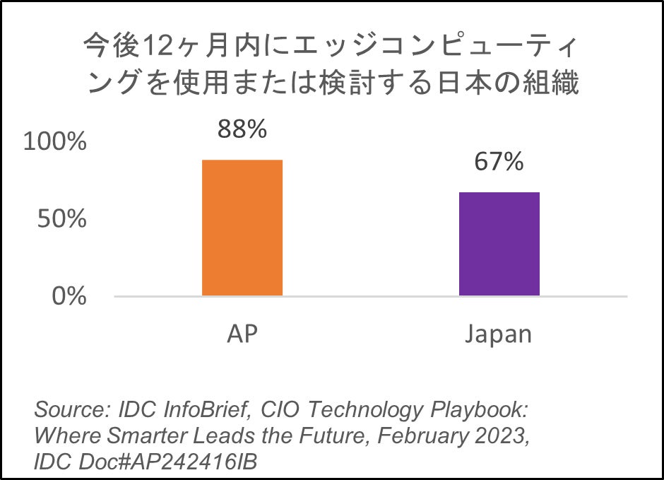 エッジイノベーションがDXの次なるフロンティアとなる:日本でエッジの採用が拡大しています。日本の組織の67%が今後12ヶ月の間に事業運営のためにエッジコンピューティングを使用または検討すると回答しています。インドでは市場の97%の企業がエッジイノベーションを活用または今後使用する状況で、エッジ採用率のトップに立っています。