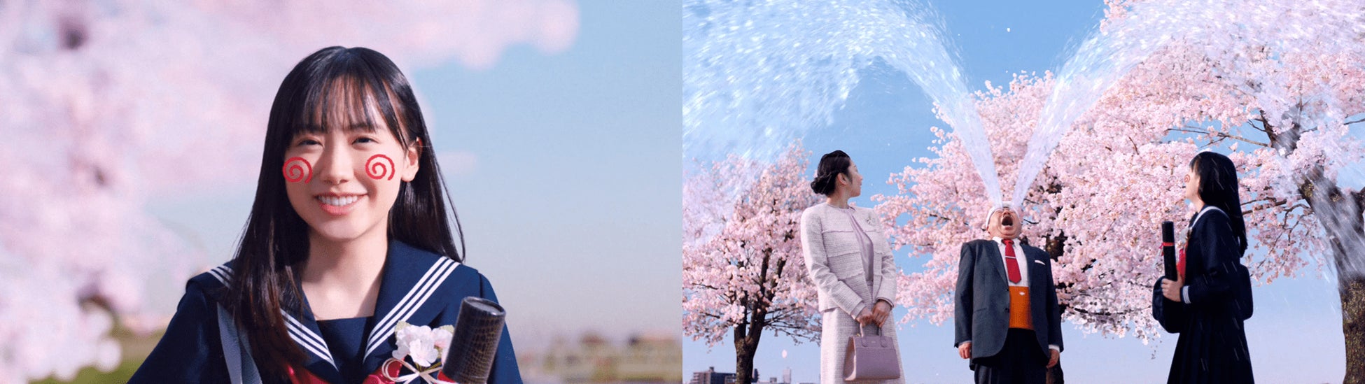 「卒業の日に」篇は、芦田愛菜さん演じる「バカボン」の卒業式当日がテーマ。卒業式の帰り道、満開の桜の木の下で、涙ながらに卒業をお祝いするバカボン一家の、ほっこりしつつもクスっと笑えてしまうような、仲むつまじい姿をお楽しみいただけます。