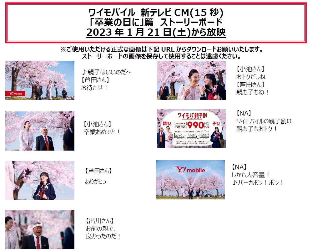 満開の桜の木の下で、漫画さながらの大号泣を見せるパパにも注目!“ワイモバイル” 新テレビCM 親も子もおトク! ワイモバ親子割シリーズ 「卒業の日に」篇2023年1月21日(土)から放映開始!