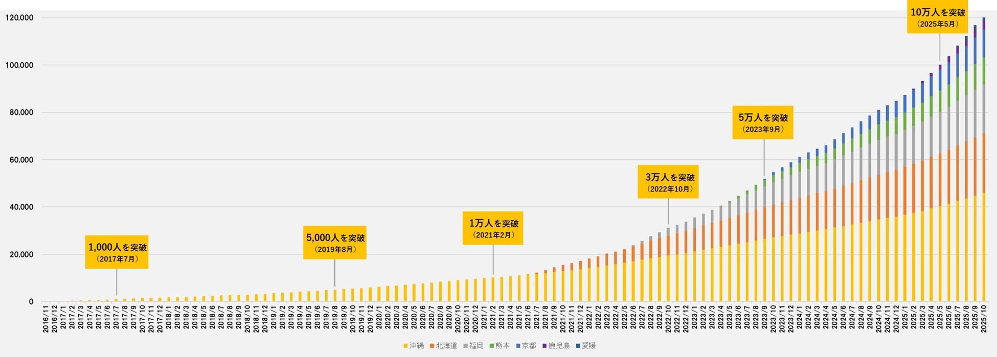 ■累積登録会員数の推移(2025年10月31日現在) ※七拠点合計