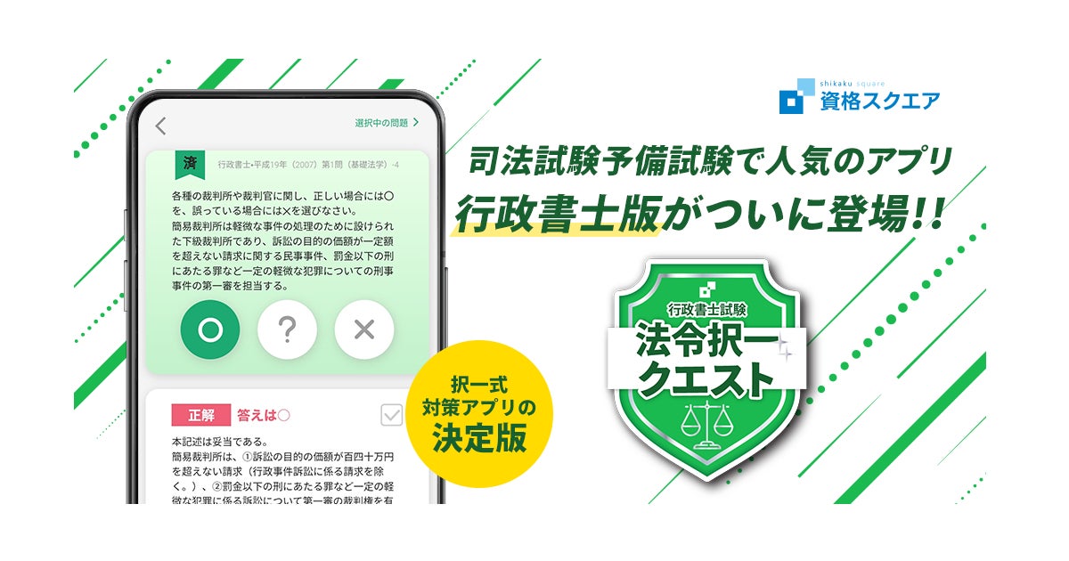 資格スクエアの法律学習アプリ「法令択一クエスト」リリース