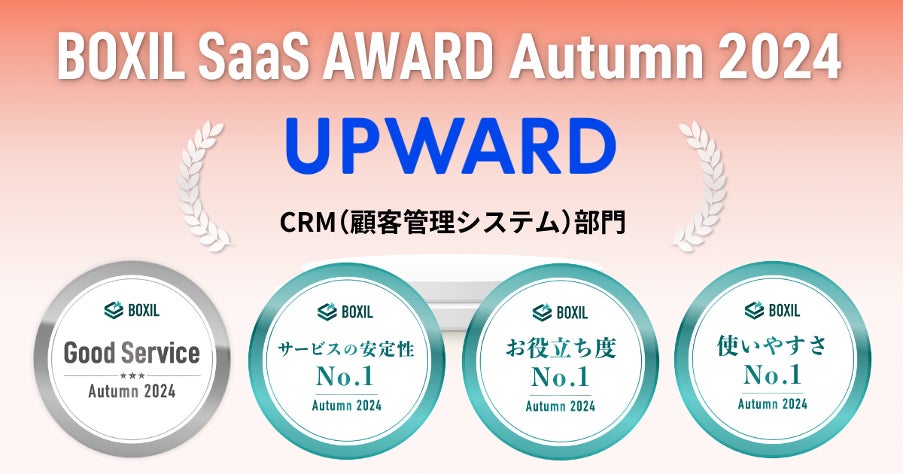 UPWARD、「BOXIL SaaS AWARD Autumn 2024」CRM(顧客管理システム)部門で「Good Service」に選出