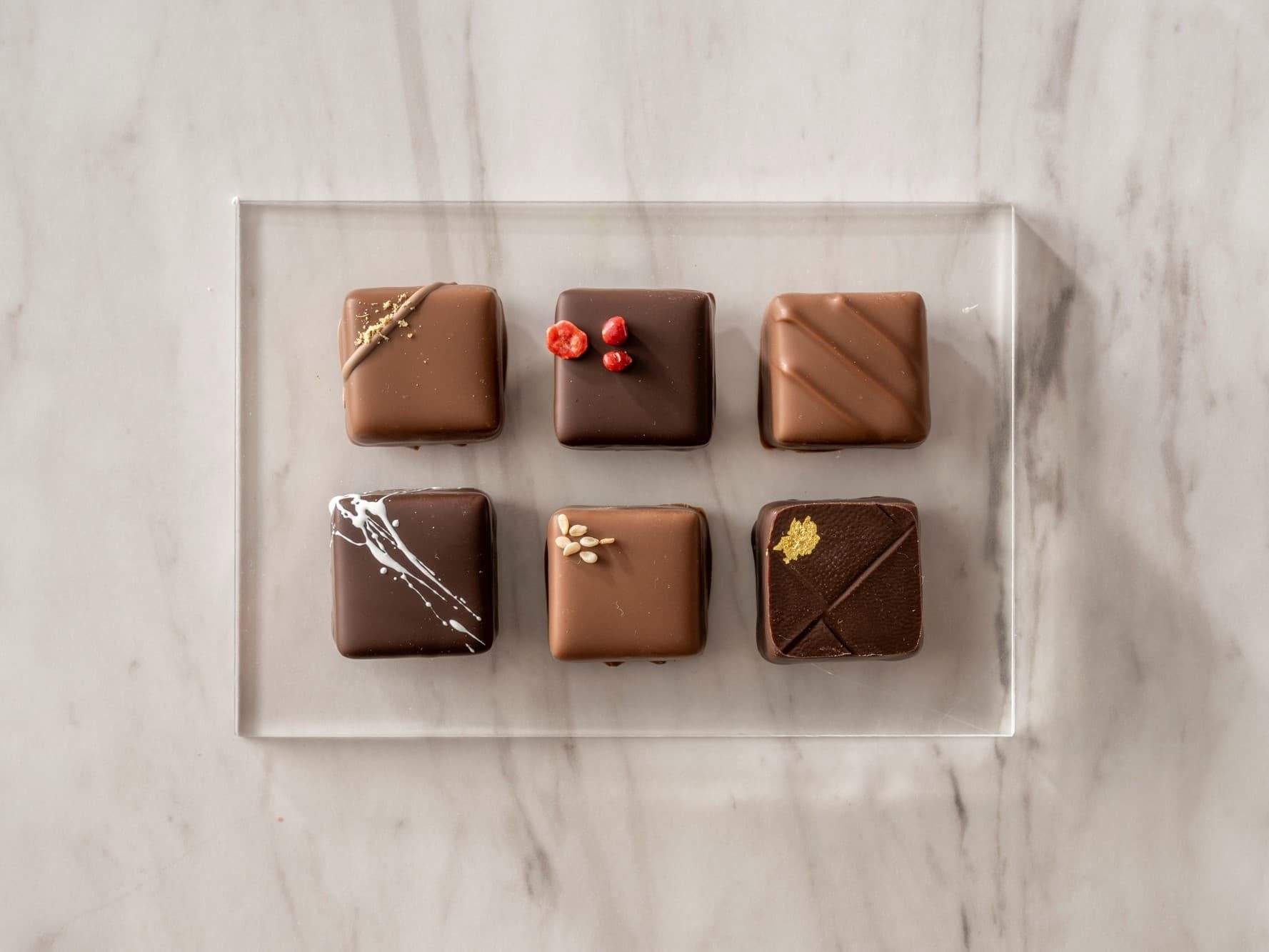 カカオの風味が豊かなビターと優しい甘さのミルク両方のチョコレートが楽しめる6粒をセレクトしました。“Cadeau”(贈り物)の名のとおり、チョコレート好きな方へのギフトにも喜ばれるひと箱です。