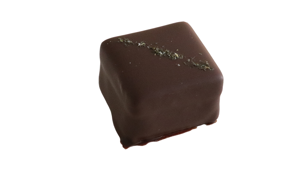 甘酸っぱい杏のゼリーと塩味のきいたガナッシュが層をなすフルーティーなショコラ