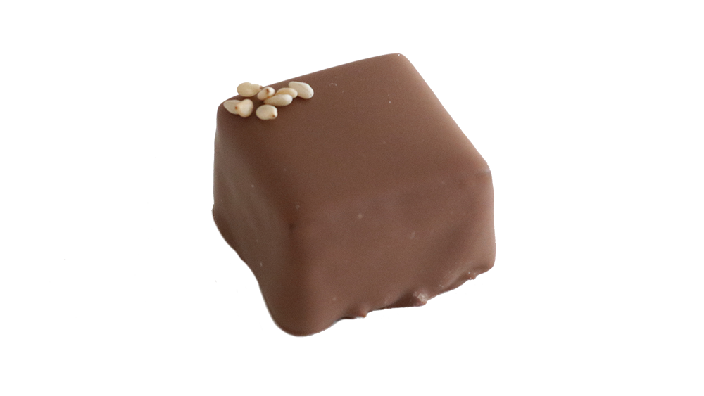 甘く香ばしいペカンナッツのプラリネとブロンドチョコレートが織りなす味わいリッチなガナッシュ