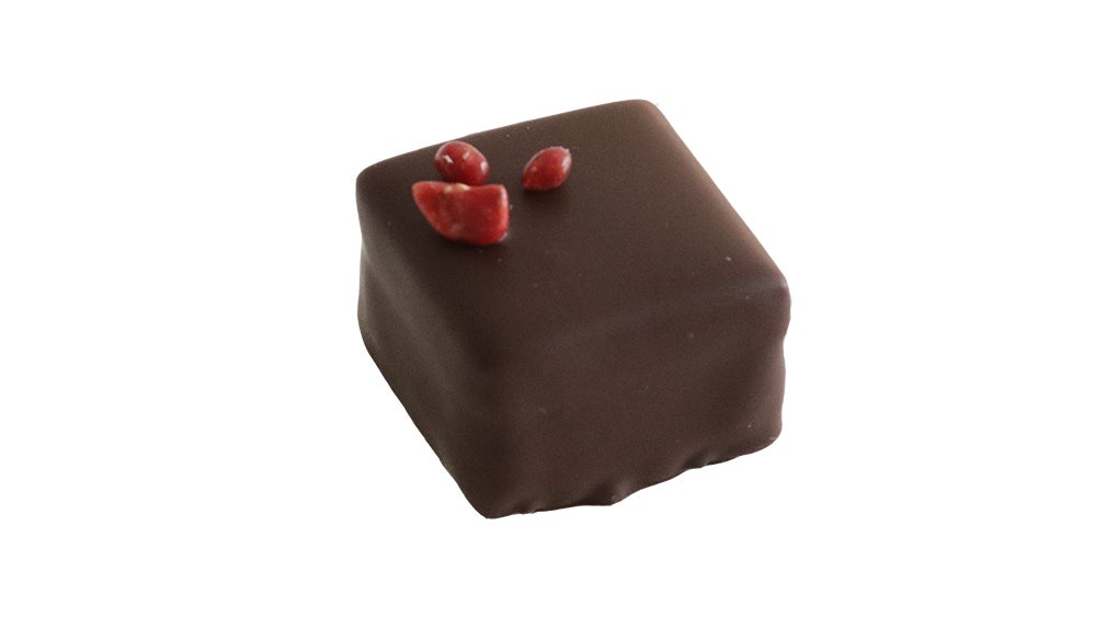 香り高いヘーゼルナッツのプラリネに甘酸っぱいいちごが爽やかさを添える一粒