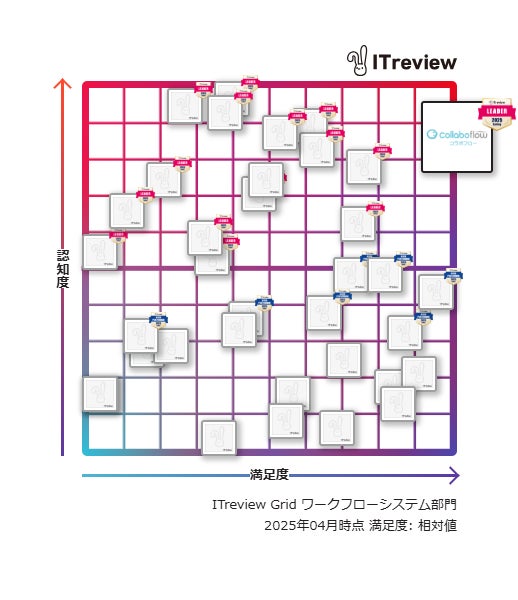 コラボフローが、「ITreview Grid Award 2025 Spring」ワークフローシステム部門で満足度と認知度の高い製品に贈られる「Leader」に3年連続で選出