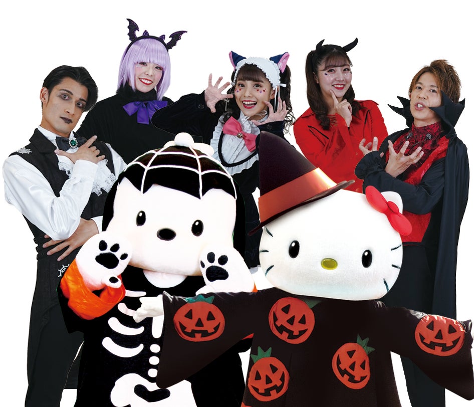 黒いカラーを取り入れて仮装したキャラクターとのグリーティングタイム