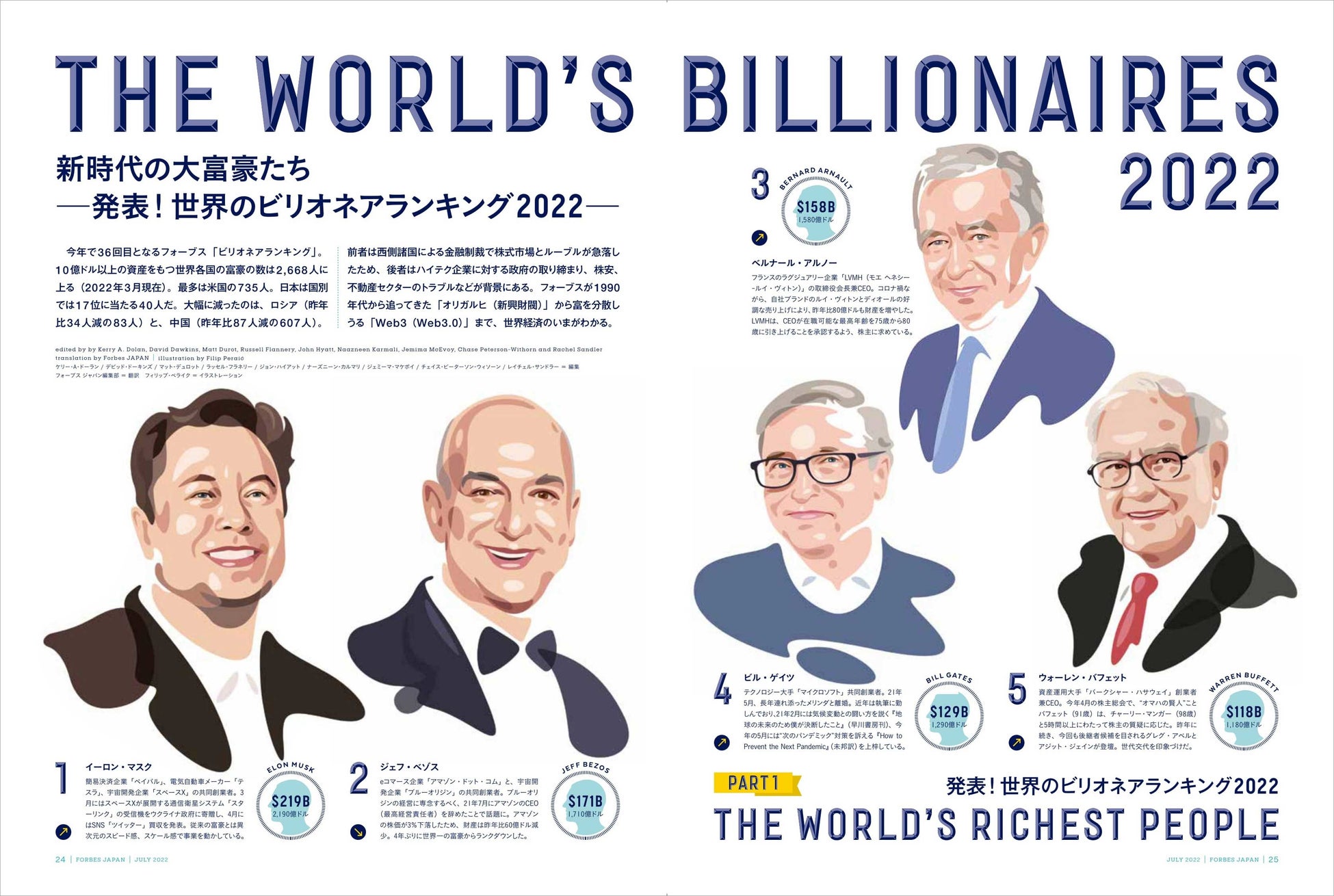 【好評発売中】世界のビリオネアランキング発表/前澤友作、独白60分『Forbes JAPAN』2022年7月号は「新時代の大富豪たち」を特集!