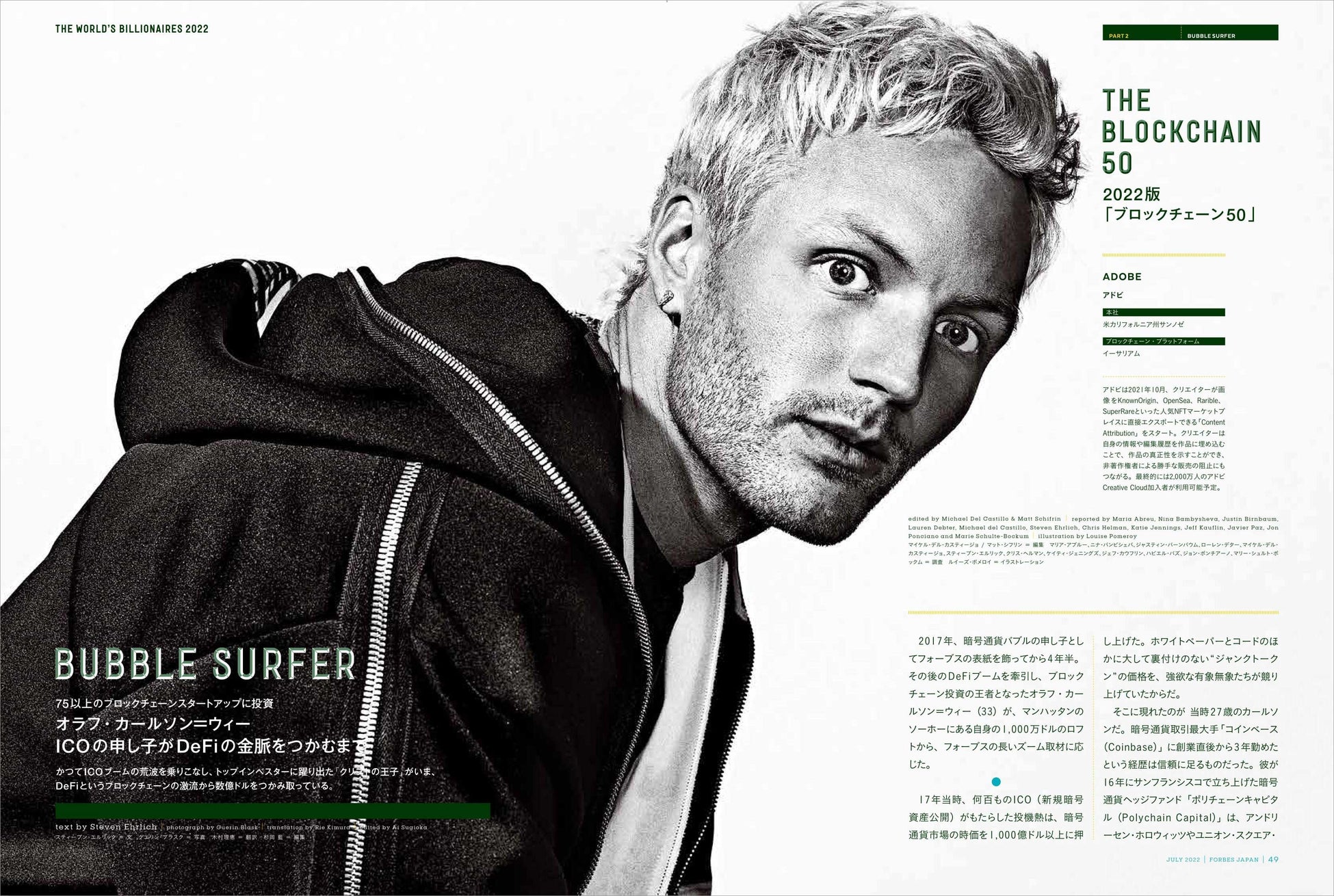 グローバルビジネス誌『Forbes JAPAN(フォーブス ジャパン)』(発行元:リンクタイズ株式会社、代表取締役会長:高野真)の2022年7月号の特集は、「新時代の大富豪たち」。