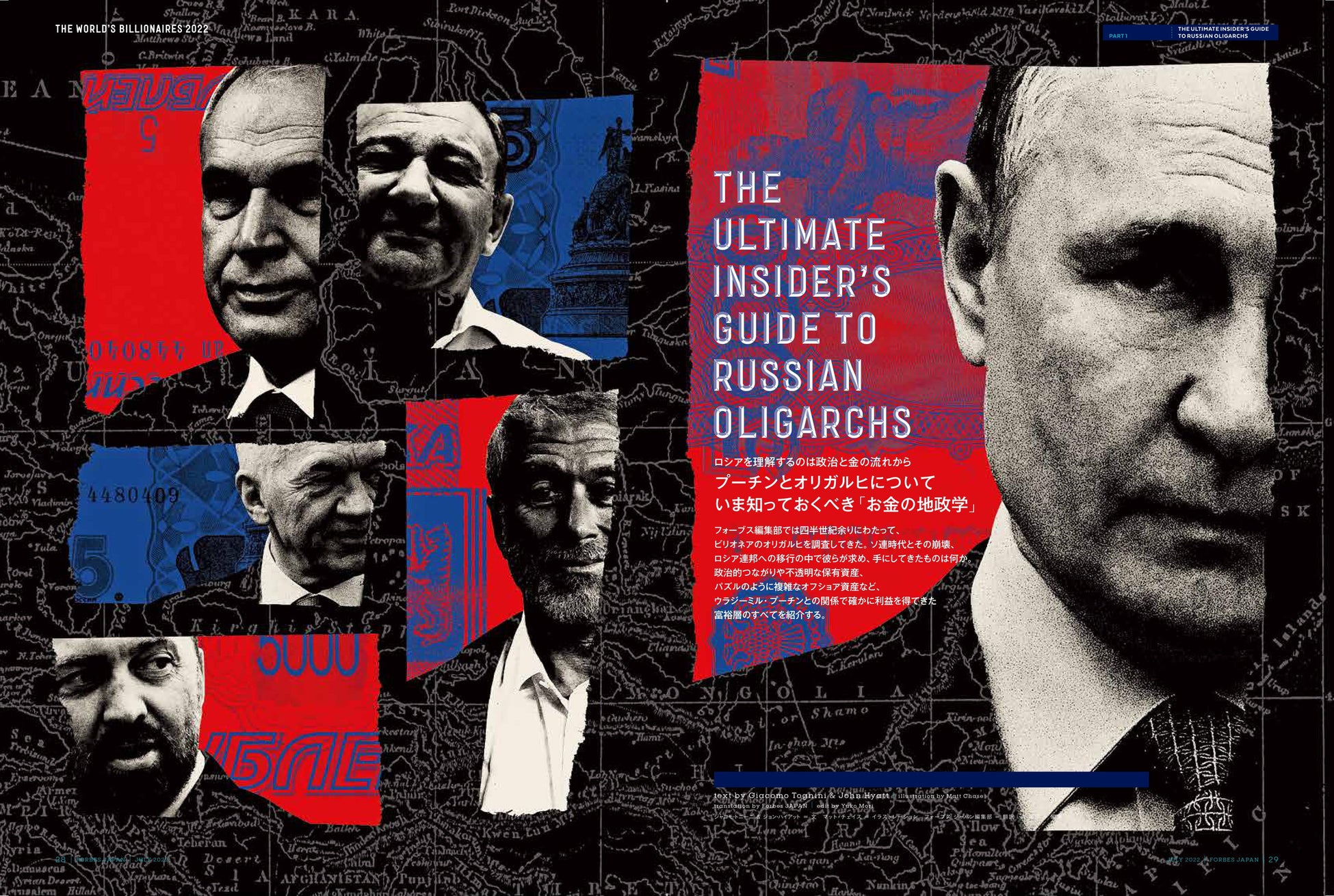フォーブス編集部では四半世紀余りにわたって、ビリオネアのオリガルヒを調査してきました。ソ連時代とその崩壊、ロシア連邦への移行の中で彼らが求め、手にしてきたものは何かーー政治的つながりや不透明な保有資産、パズルのように複雑なオフショア資産など、ウラジーミル・プーチンとの関係で確かに利益を得てきた富裕層のすべてを紹介しています。