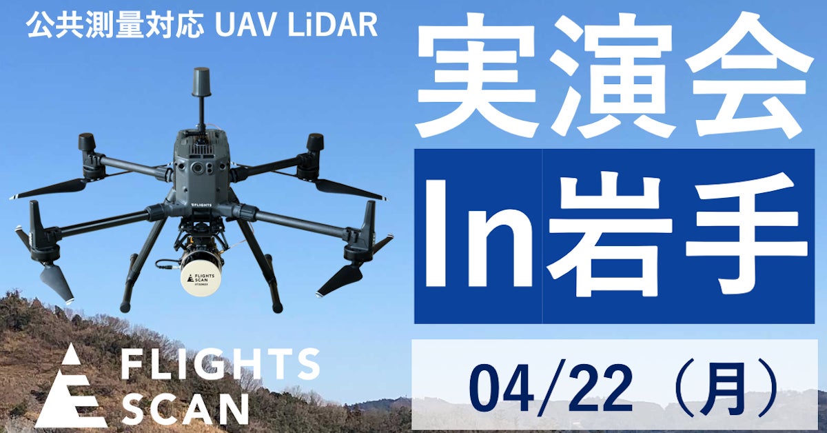 FLIGHTSと岩手測器社は、4月22日に無料実演会を開催。タイトルは【ドローン搭載型LiDAR「FLIGHTS SCAN®」無料実演会 in 岩手】です。岩手県では昨年夏以来の開催。実演会では、ドローンレーザーの実際のオペレーションをお見せします。