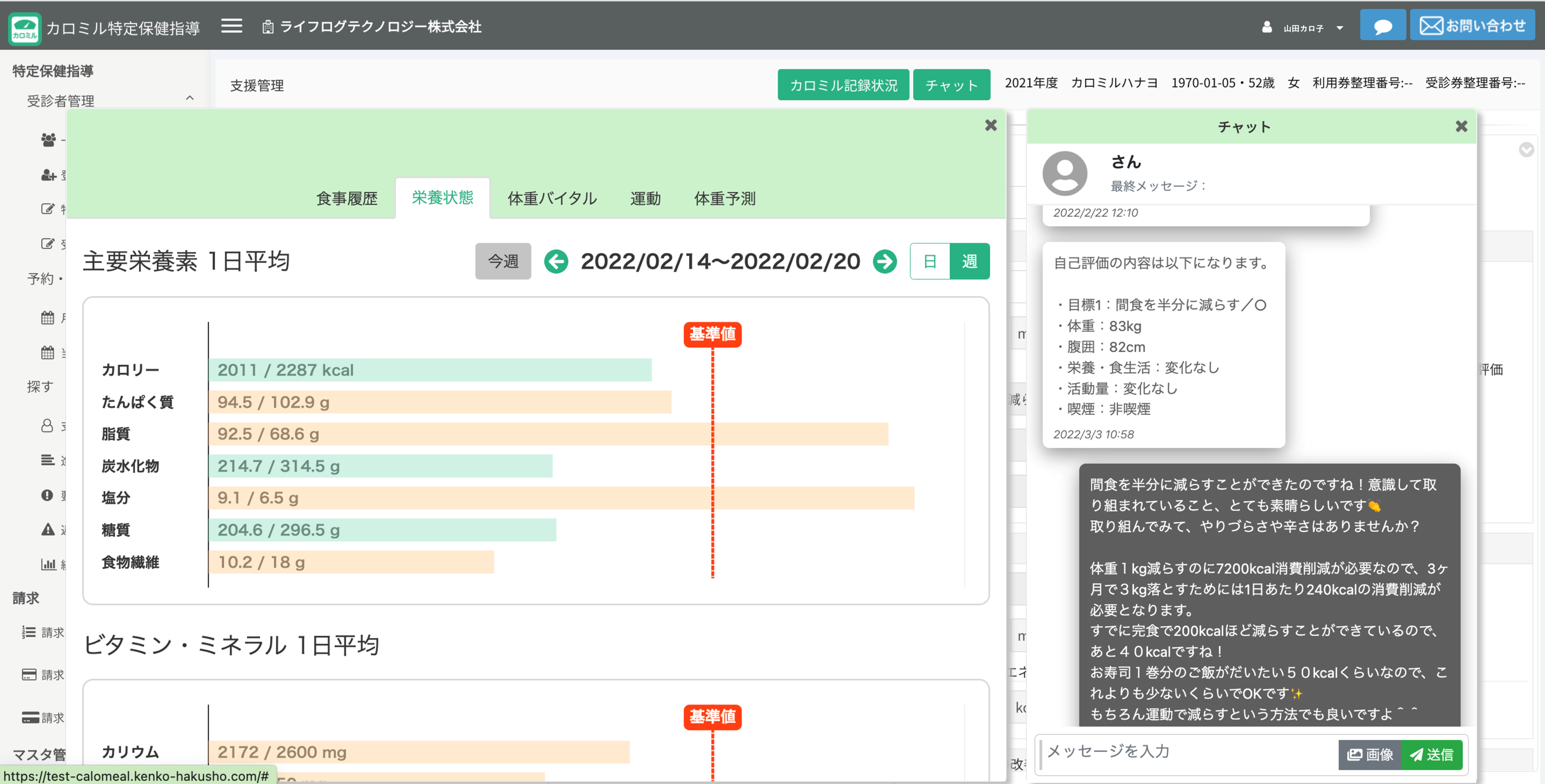 2018年にスタートした第3期特定健診・保健指導からICTの活用促進がはじまり、オンラインを活用した特定保健指導を実施する施設が増えています。しかし、まだ多くの現場では電話や手紙といったアナログな手段で対象者とやり取りをしているシーンがほとんどです。こういった現状から、対象者が簡単に食事や体重などの記録ができ、かつ指導者側の業務を一本化して負担を減らすツールを提供したいと、健康管理アプリ「カロミル」を使ったウェブツール、「カロミル特定保健指導」を開発しました。