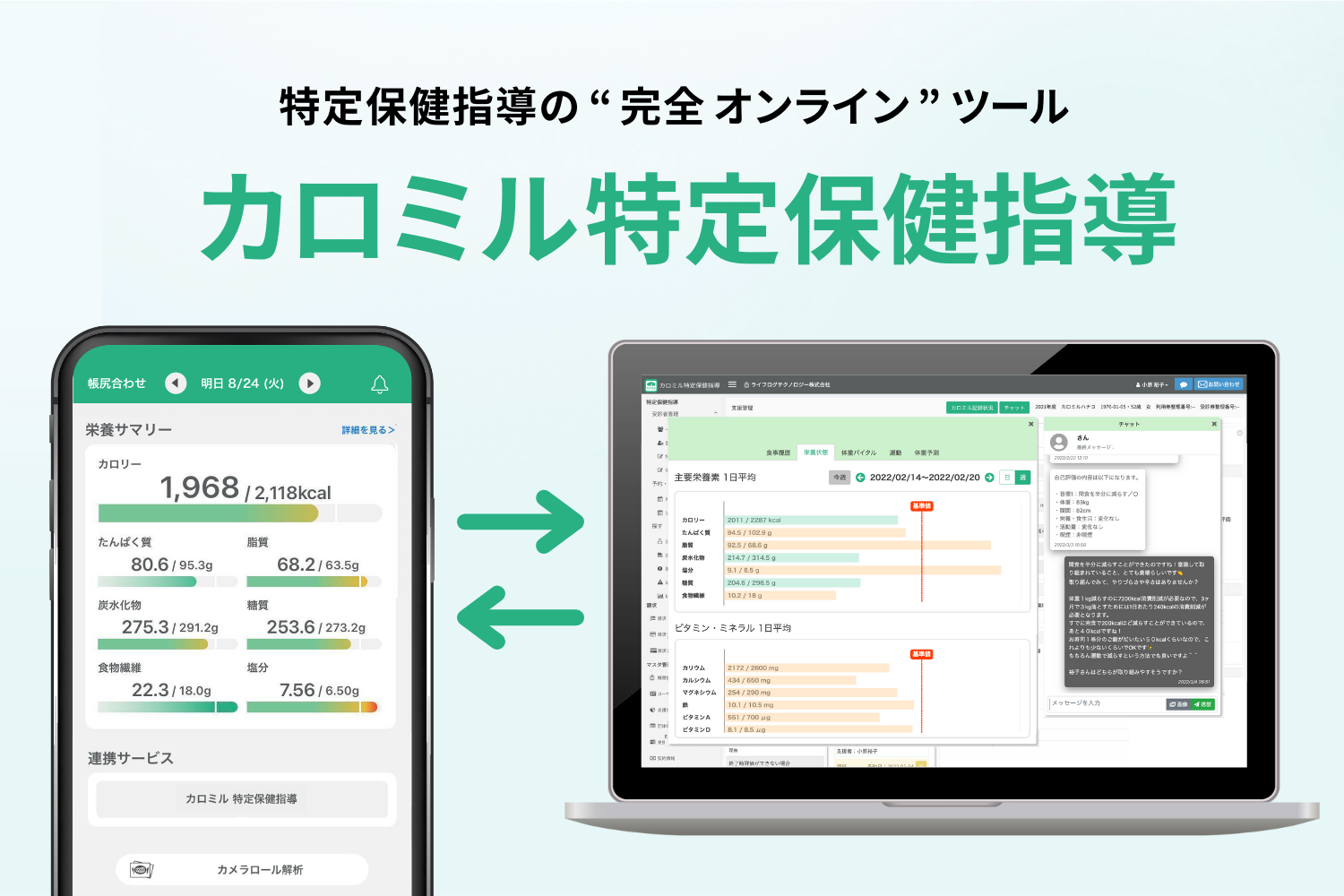 食事・運動・体重管理アプリケーション(以下アプリ)「カロミル」の開発・提供をするライフログテクノロジー株式会社(東京都中央区、代表取締役:棚橋繁行)は、特定保健指導実施機関などを対象に、指導業務をオンライン化するウェブツール「カロミル特定保健指導」をリリースしました。これにより、機関内の業務負荷軽減や指導の質向上をサポートできるようになります。