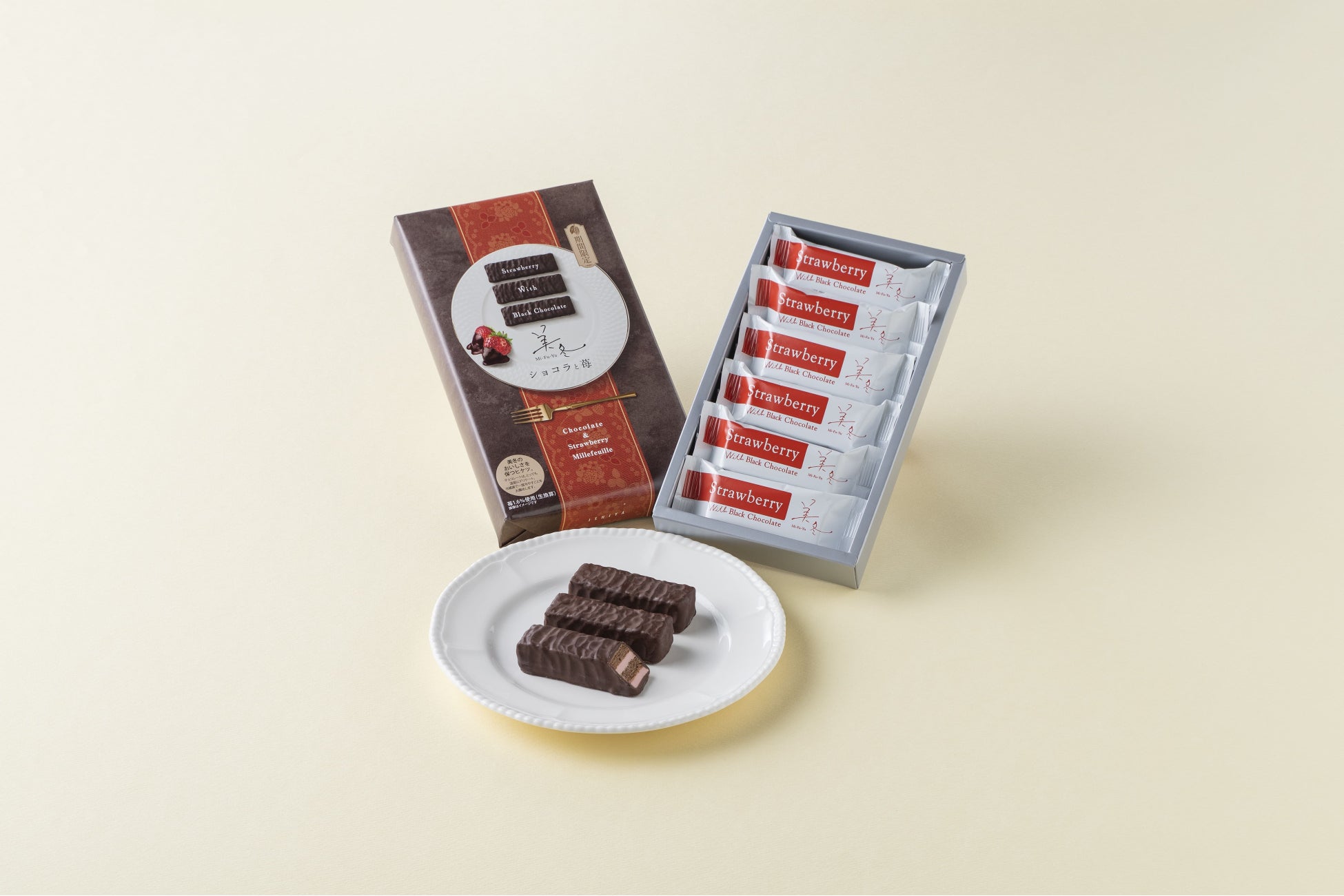 ■概要:ココアパイと苺フィリングを重ね、ブラックチョコレートでコーティングしたちょっぴりビターなミルフィーユ。カカオのほろ苦さと苺フィリングの甘酸っぱい風味が調和した、冬に食べたいリッチな味わいの美冬です。