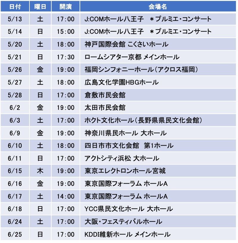5/13(土)〜6/25(日)まで、全国16都市18公演のオフィシャルサイト先行予約(先着)が、明日1/27(金)12:00から受付開始!