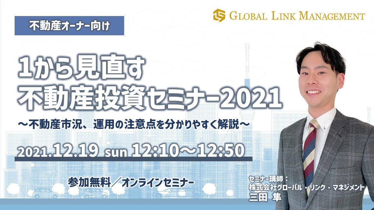 投資用不動産オーナー向けセミナー「1から見直す不動産投資セミナー2021」を2021年12月19日(日)にオンライン形式で初めて開催いたします。