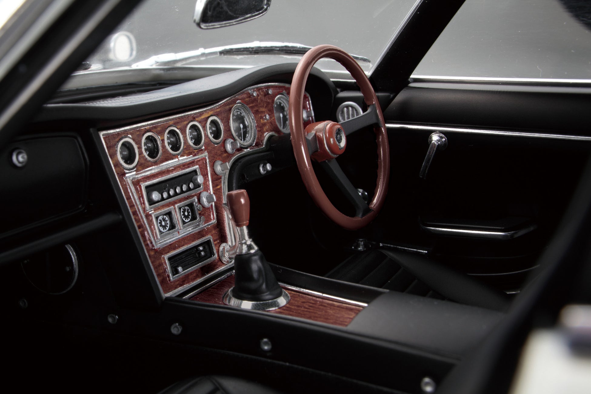 トヨタ博物館が所蔵する実車(2000GT前期型)を徹底取材し、当時の貴重な資料をもとに再現された全長約41.7cmの1/10スケールモデルが完成する組立シリーズ。流麗なフォルムはもちろん、エンジンやヘッドライトなどのメカニズムと、最高級GTカーにふさわしい木目調のインテリアなど、ディテールまで追求して再現しています。