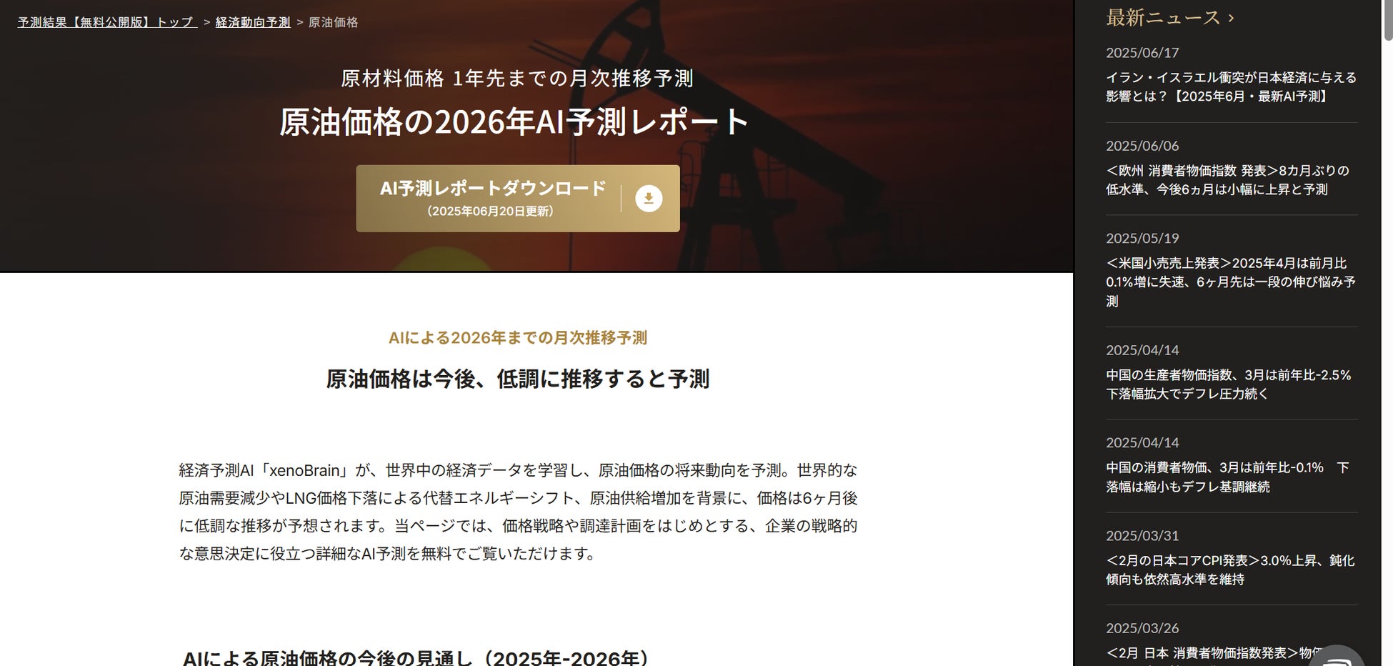 経済予測プラットフォーム『xenoBrain』、原材料価格、製品需要、景気動向など50市況のAI予測ページを更新・無料公開