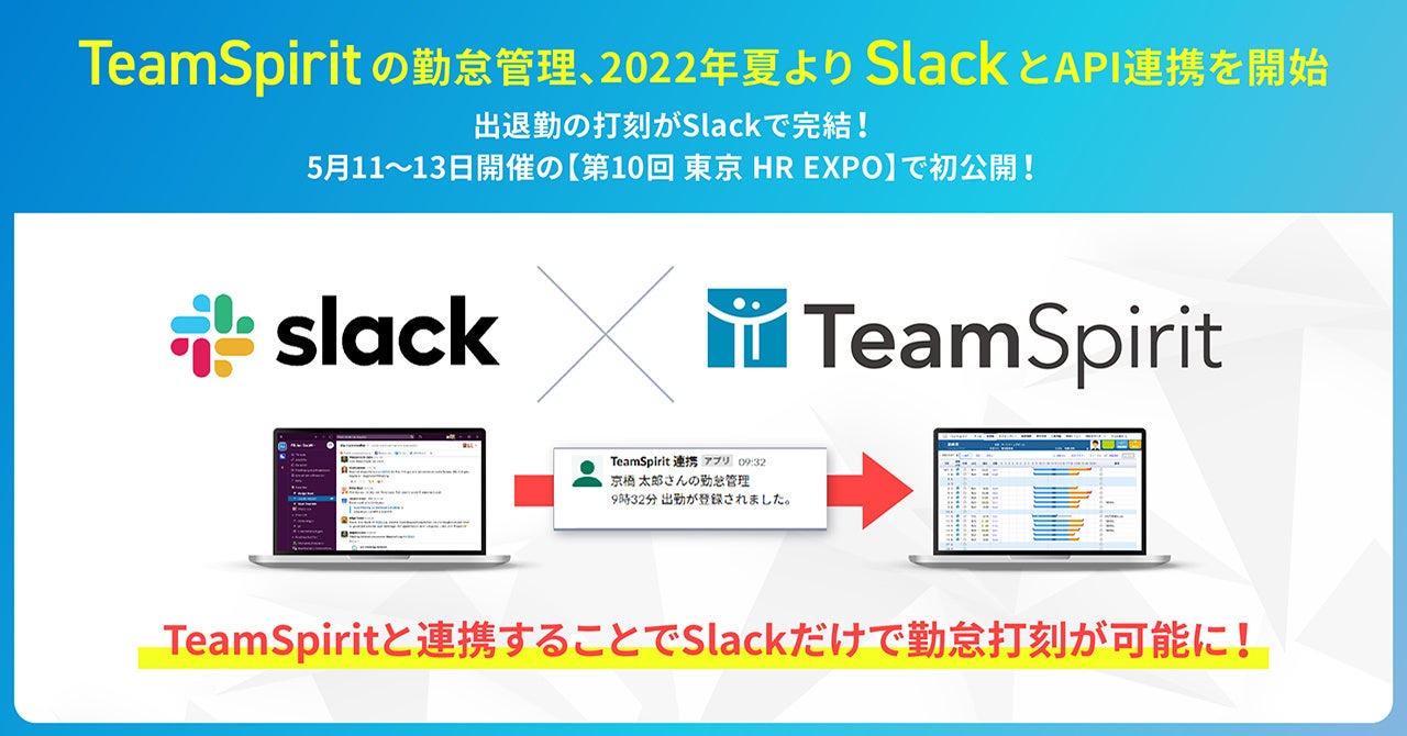 また、正式サービス提供に先駆け、2022年5月11日(水)〜13日(金)の3日間、東京ビッグサイトで開催される「第10回 東京 HR EXPO(人事労務・教育・採用)」の「TeamSpirit」出展ブースにてβ版を先行公開※いたします。