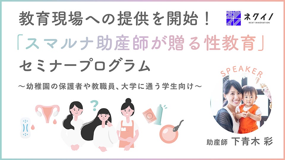株式会社ネクイノ(大阪市北区、代表取締役:石井 健一 、以下ネクイノ)が運営する、スマホでピルの相談・診察・処方まで行えるオンライン・ピル処方サービス「スマルナ(※1)」は、これまで包括的性教育を支援するべく、セミナーやイベント、座談会など「スマルナ助産師が贈る性教育」セミナーを複数回にわたり実施してまいりました。人の成長過程において避けて通れない「性教育」。この度、幼稚園から大学などの教育機関向けに、それぞれのご希望に応じた内容にカスタマイズし提供する、セミナープログラムの提供を開始します。