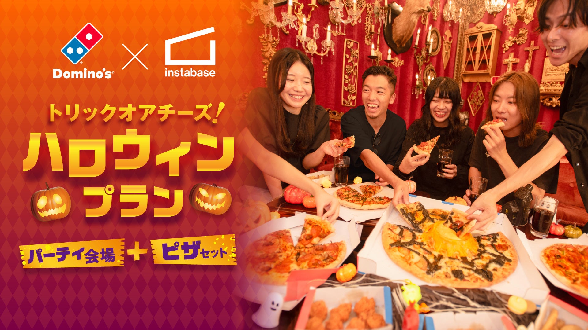株式会社Rebase(本社:東京都渋谷区、代表取締役:佐藤 海、以下Rebase)が展開するレンタルスペースのマッチングプラットフォーム「instabase(インスタベース)」は、株式会社ドミノ・ピザ ジャパン(本社:東京都品川区、代表取締役:ジョシュア・キリムニック、CEO:マーティン・スティーンクス、以下:ドミノ・ピザ)とコラボし、期間限定でパーティー会場とピザセットが揃ったパーティープラン「トリックオアチーズ!ハロウィンプラン」を提供いたします。