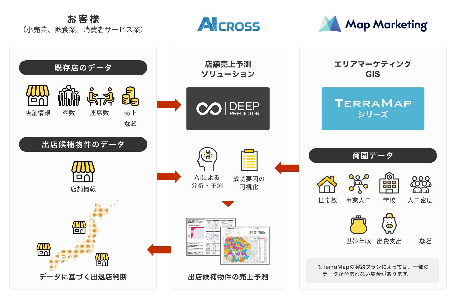AI CROSS、エリアマーケティング大手のマップマーケティングと協業~店舗売上予測ソリューションとTerraMapシリーズの連携により、攻めの出店戦略を支援~