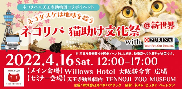 入場料は任意のご寄付のみ。参加するだけで楽しみながらネコ助けができるイベントが“大阪のリアルテーマパーク”・新世界で関西初開催。人気スポット・天王寺動物園とのコラボセミナーも開催します。