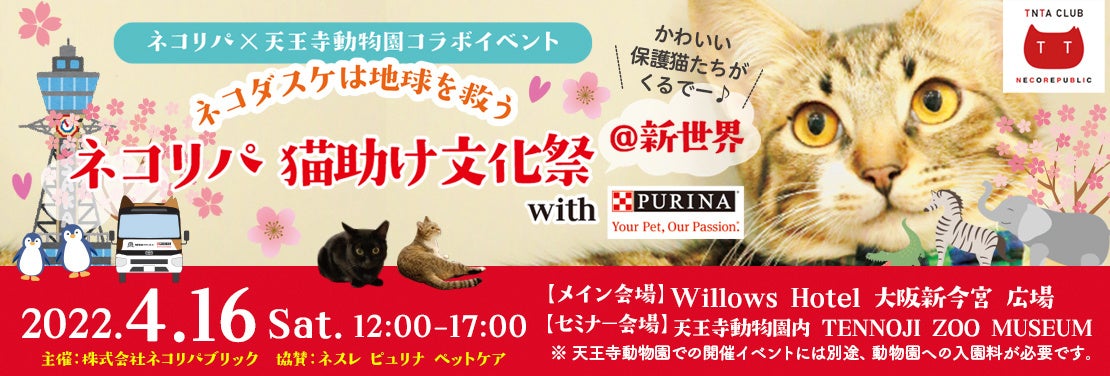 大阪のディープスポットでネコ助け!?「ネコリパ猫助け文化祭」を大阪・新世界で関西初開催。ピュリナ ネコのバス保護猫譲渡会や天王寺動物園にて猫助けセミナーも。