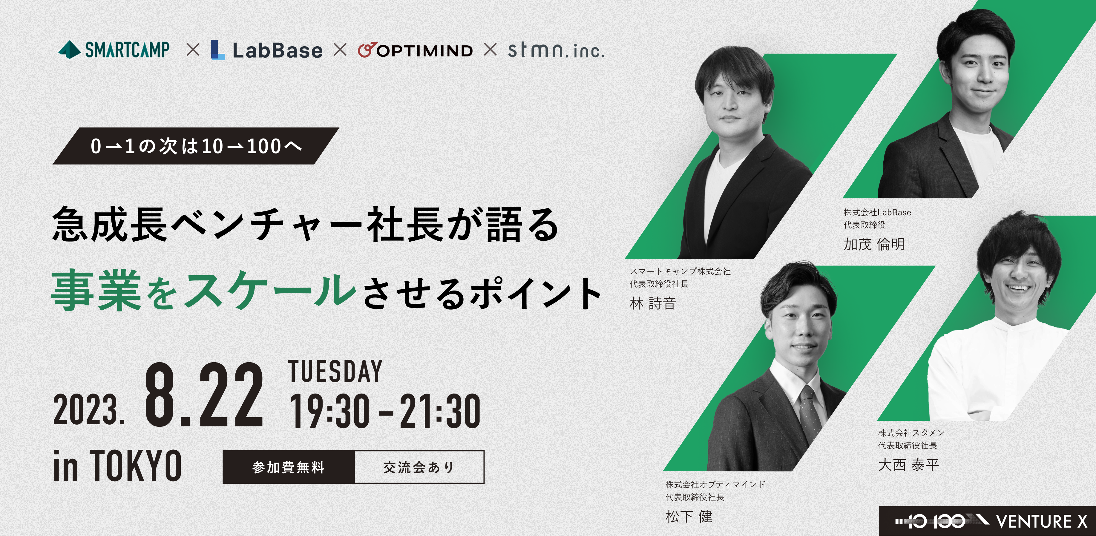8/22 | 0→1の次は10→100へ 急成長ベンチャー社長が話す 事業をスケールさせるポイント | 東京 |
