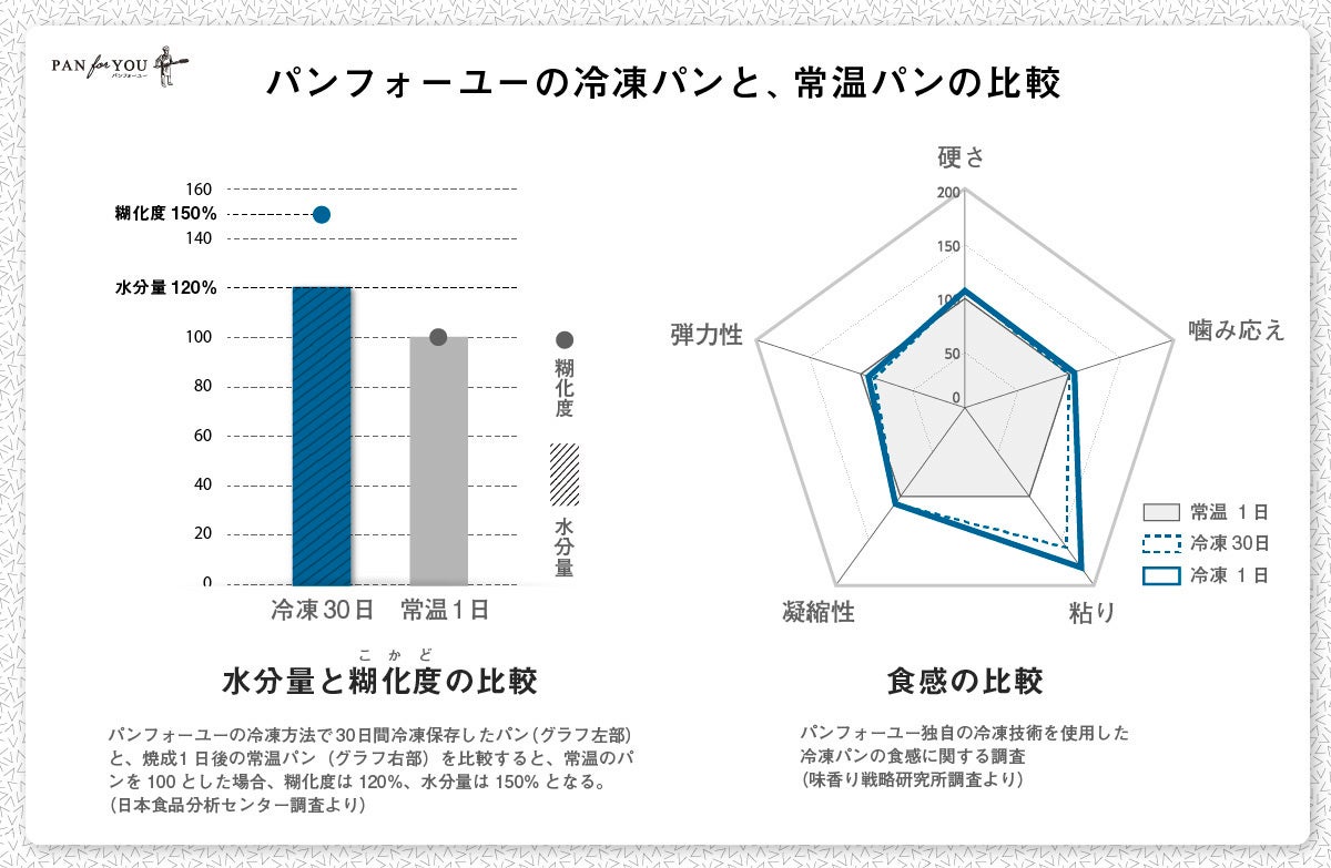 全てパンフォーユー独自冷凍技術を使用して”デンプンの老化”を抑えてパンを劣化させないので、パン屋さんの焼き立てのおいしさを閉じ込めた”ふわふわ&もっちり”のパンを簡単に食べることが可能です。