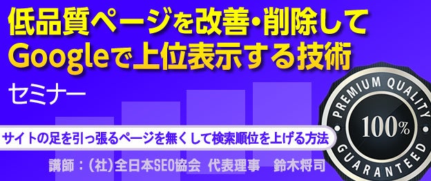 このセミナーを受講すれば、低品質ページの意味とその改善方法がはっきりとわかるようになるはずです。