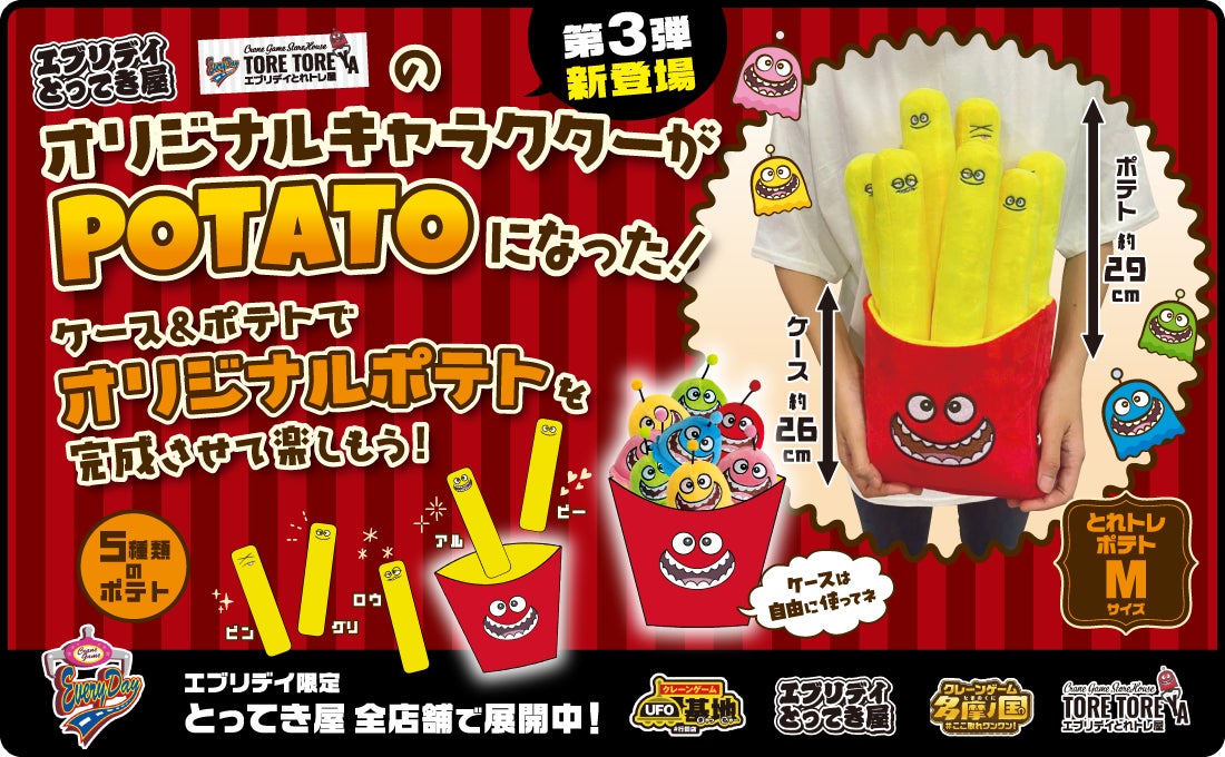 【オリジナル景品第3弾】とれトレポテトが大人気につき再入荷!新たにMサイズと持ち運べるSSサイズも新登場!