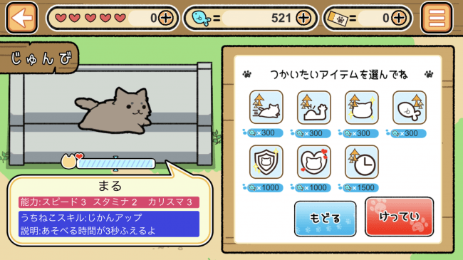 簡単に遊べるゲームとなっています!また、ホーム画面では走り回るねこたちを眺めたり、タップすることで
