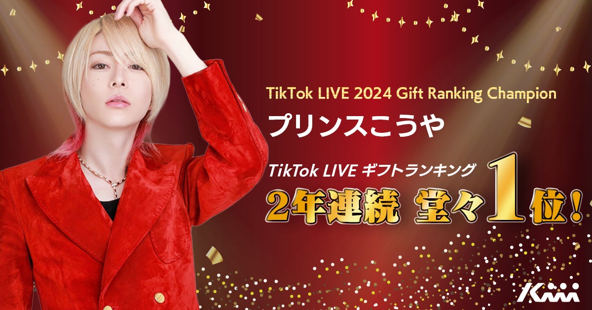 今年TikTokで活躍したクリエイターを表彰する「TikTok LIVE All Stars 2024」のTikTokギフトランキングでプリンスこうやが1位を獲得!なんと、受け取った年間投げ銭額は18億円!これにより、昨年に引き続き2年連続1位を達成。