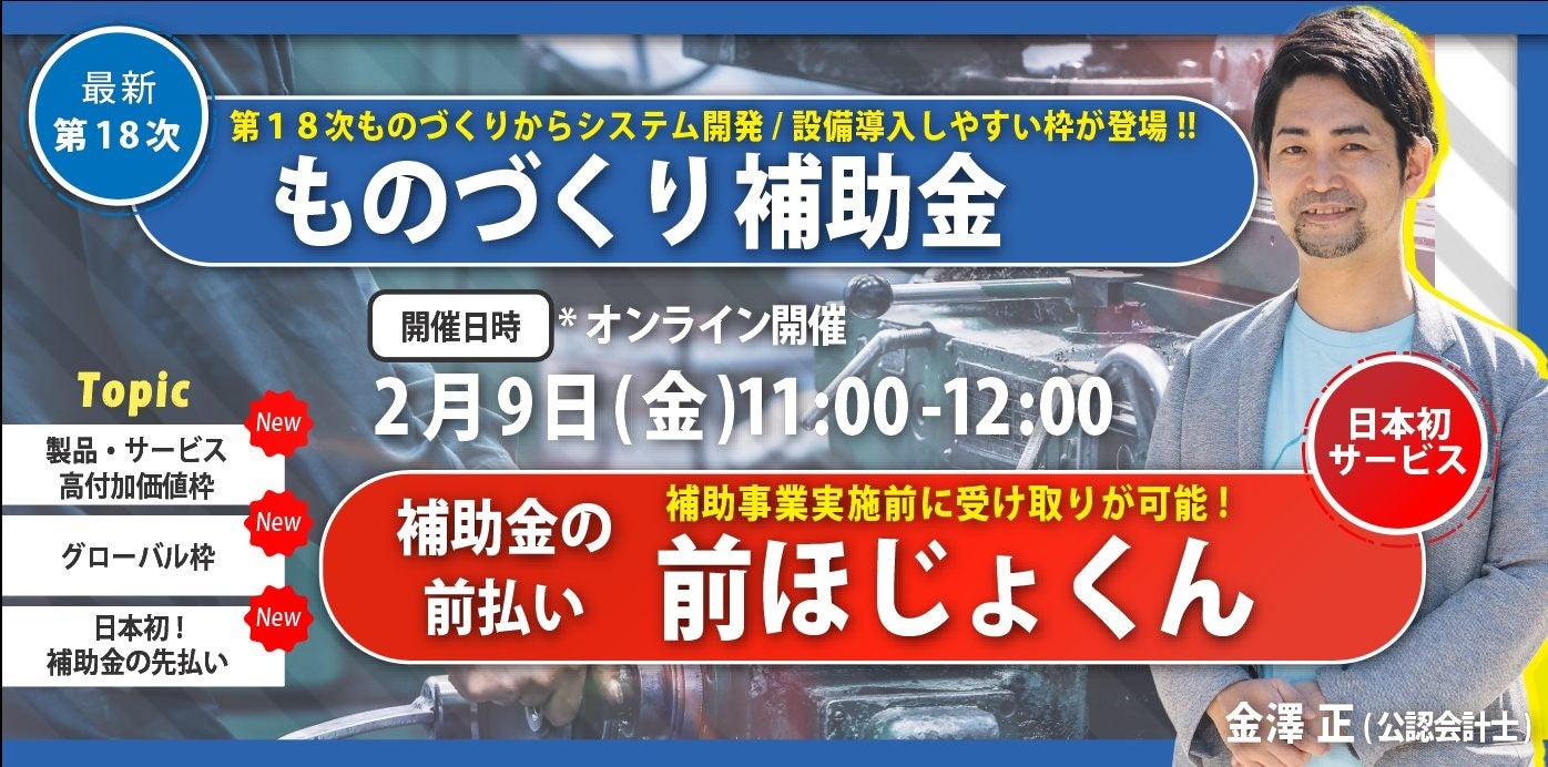 【2/9 11:00-】1年早く受け取り可能!第18次ものづくり補助金解説セミナーを開催
