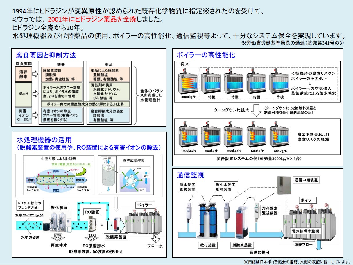 三浦工業株式会社(本社:愛媛県松山市、代表取締役:宮内大介)は、2021年11月26日に実施された、一般社団法人 日本ボイラ協会主催の「第59回(2021年度) 全日本ボイラー大会」にて、アクア開発部 アクア薬品技術課 専任課長 上笹政仁が「技術高度化奨励賞」を受賞いたしましたのでお知らせいたします。