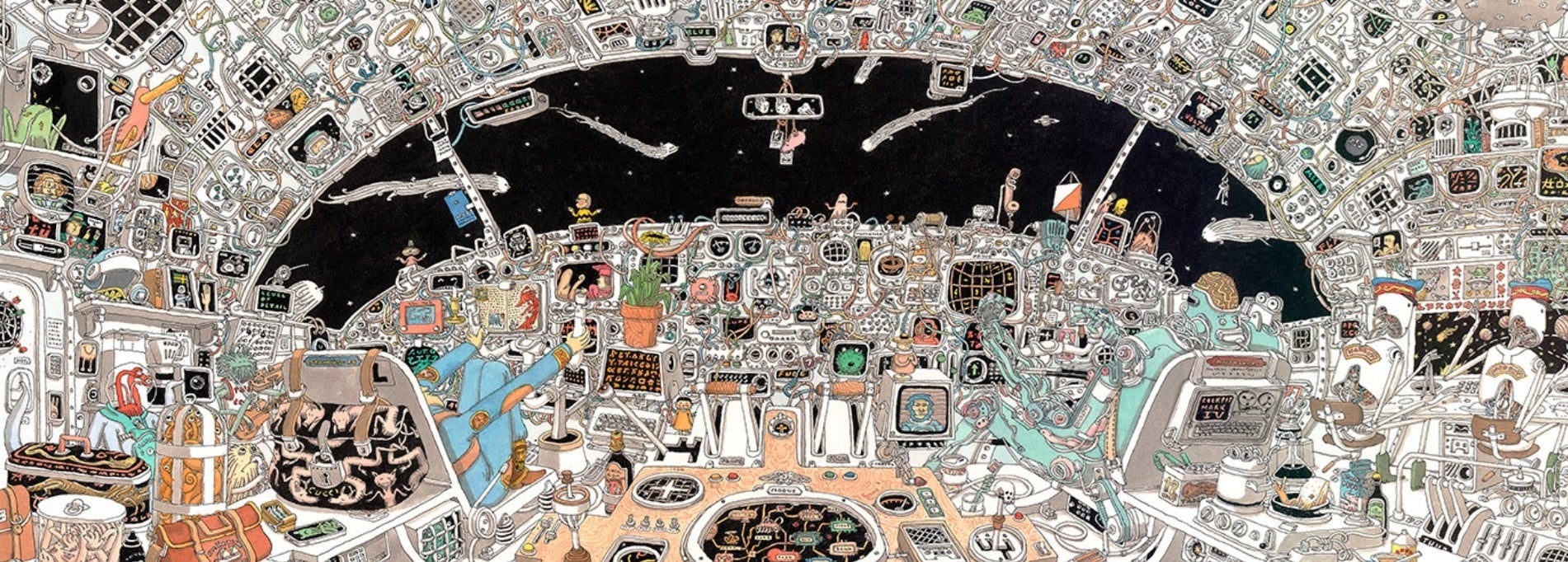 細密な下書きを行い、ペンと水彩を用いて描く作品の数々は、どれも一風変わった独創性のある世界観で多くの人々を魅了しています。