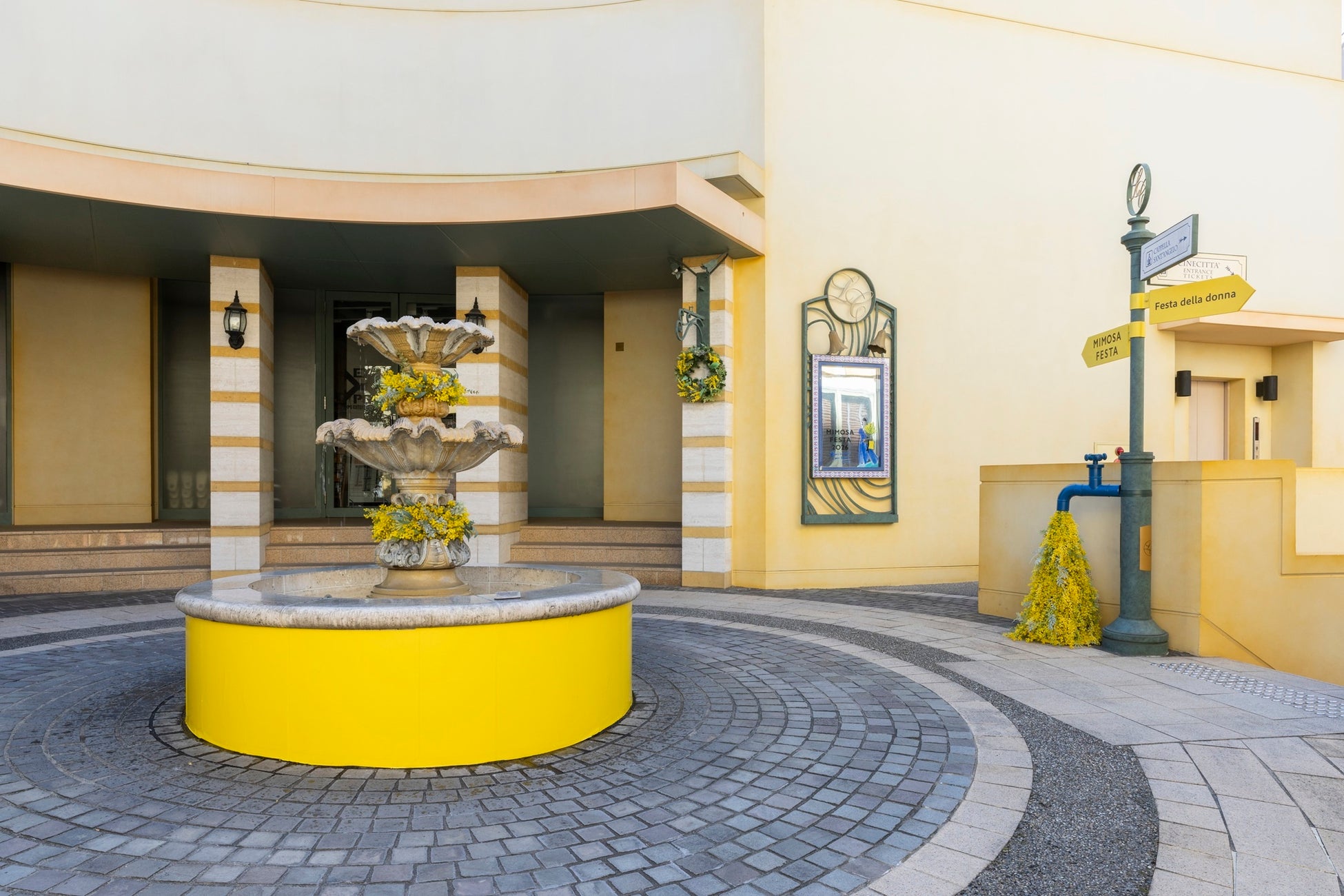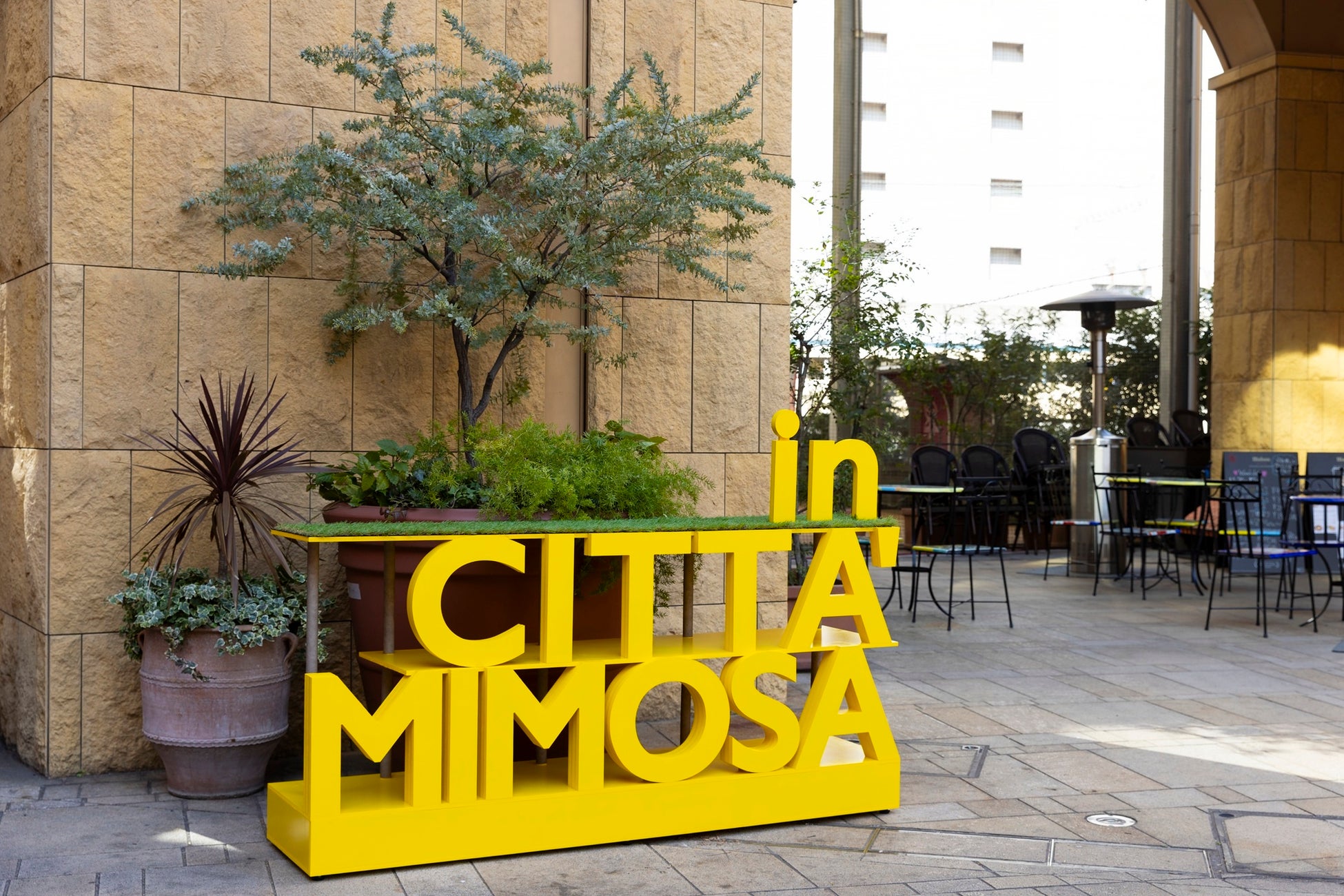 春の訪れとともに、ラ チッタデッラ全体にミモザの優しいイエローが広がり、イタリアの街角に迷い込んだような華やかな装飾が街を包みます。今年はアクセントとしてブルーのアイテムも各所に散らし、イタリアらしい遊び心あふれる、ちょっとユニークなスポットも登場します。
