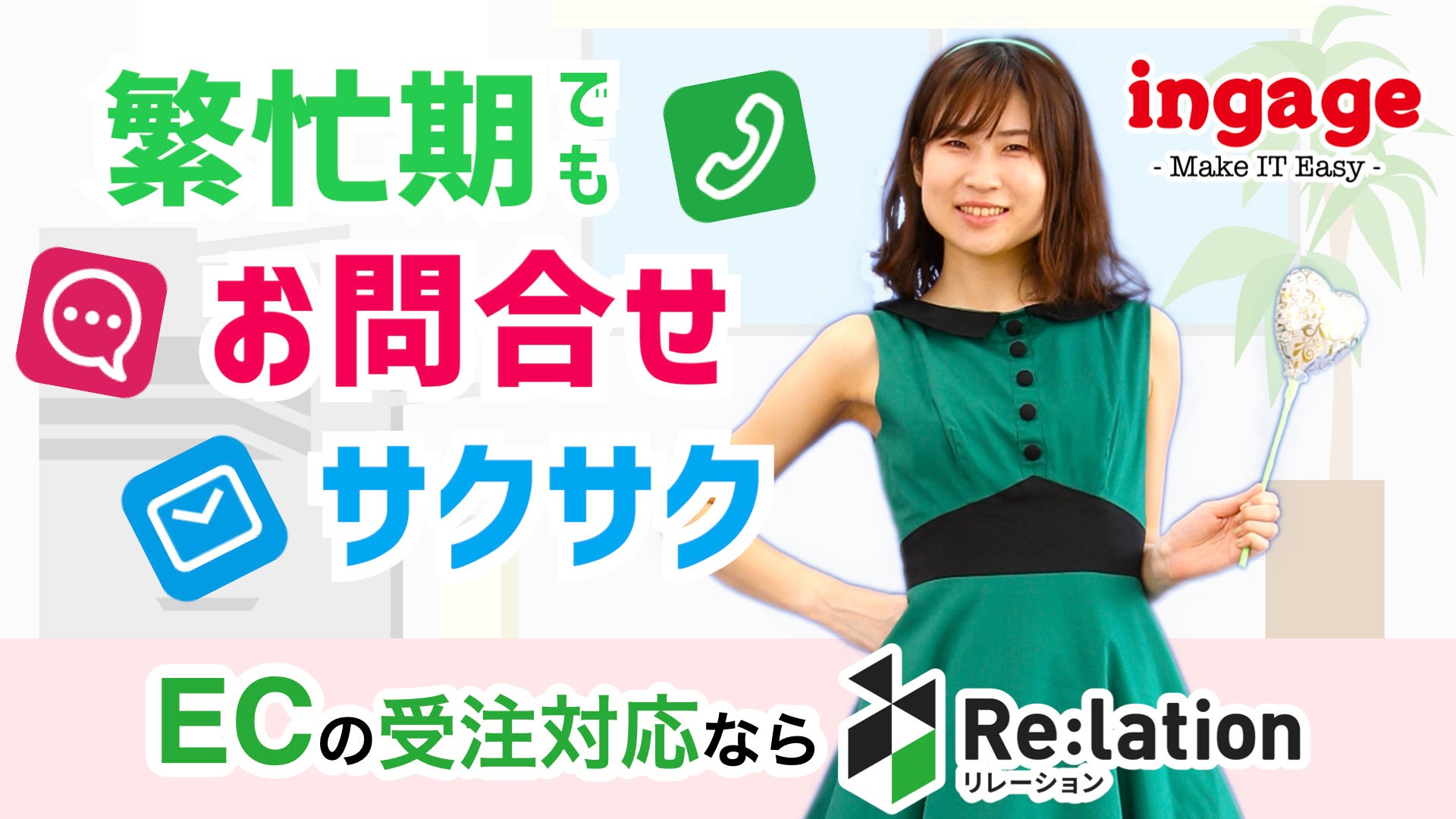 株式会社インゲージ(本社:大阪府大阪市、代表取締役CEO:和田 哲也)は、累計導入社数3,500社を超える顧客対応クラウド『Re:lation(リレーション)』にて、ECサイト担当者の「あるある」と、その解決方法を楽しく紹介するCM動画を公開しました。