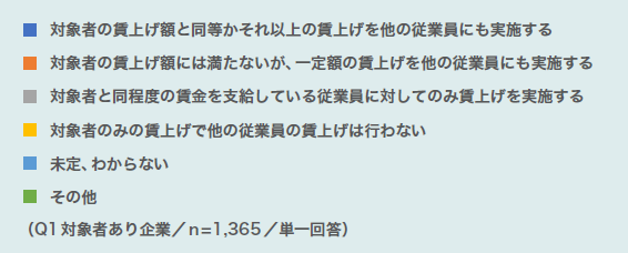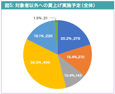 注目すべき点は、最低賃金引上げへの対応が、単に対象者の賃金を引き上げる対応にとどまらず、賃金体系全体へ波及していることである。対象者以外への賃上げを予定する企業が一定数存在し、特に企業規模が大きくなるほどその割合が高まる傾向が見られた。最低賃金の改定が、結果として社内の賃金バランスや人事制度全体の見直しを促している実態がうかがえる。