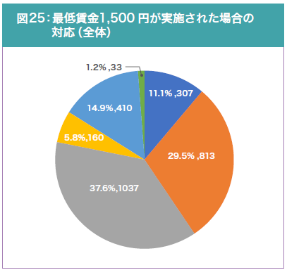 最低賃金1,500円の実施については、現時点では慎重な見方が多く、中小企業経営への影響を懸念する声が強い。