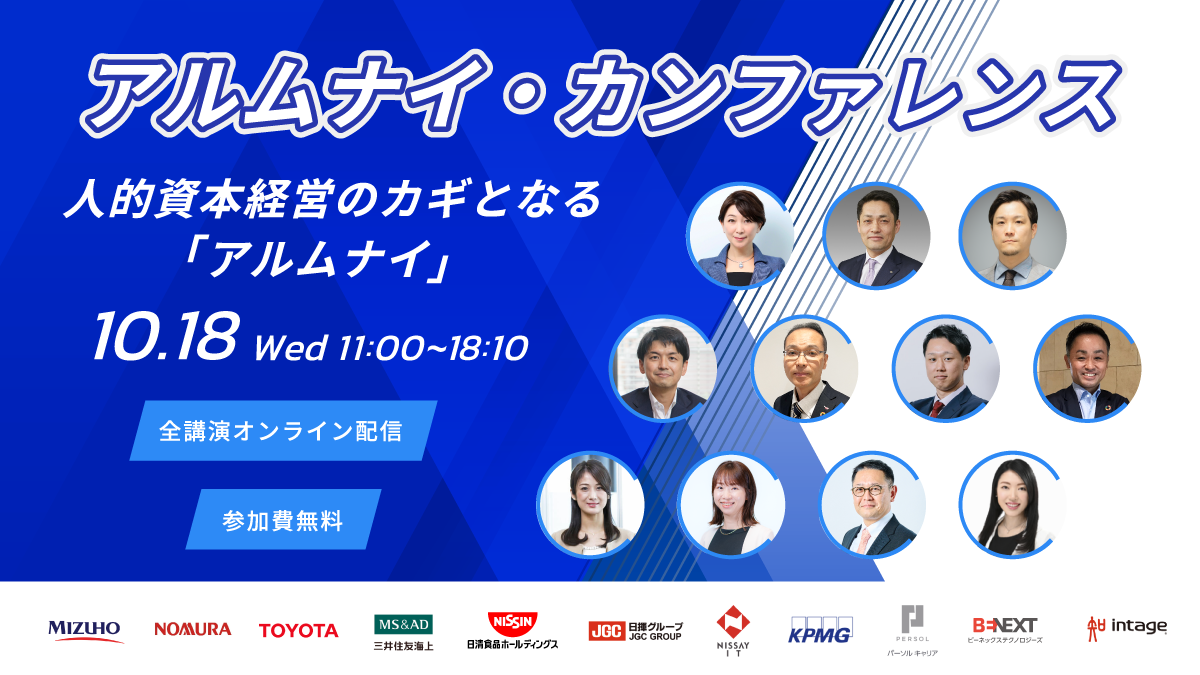 【10/18(水)】『アルムナイ・カンファレンス~人的資本経営のカギとなる「アルムナイ」~』新たに1社加わり全てのセッションの登壇企業が決定