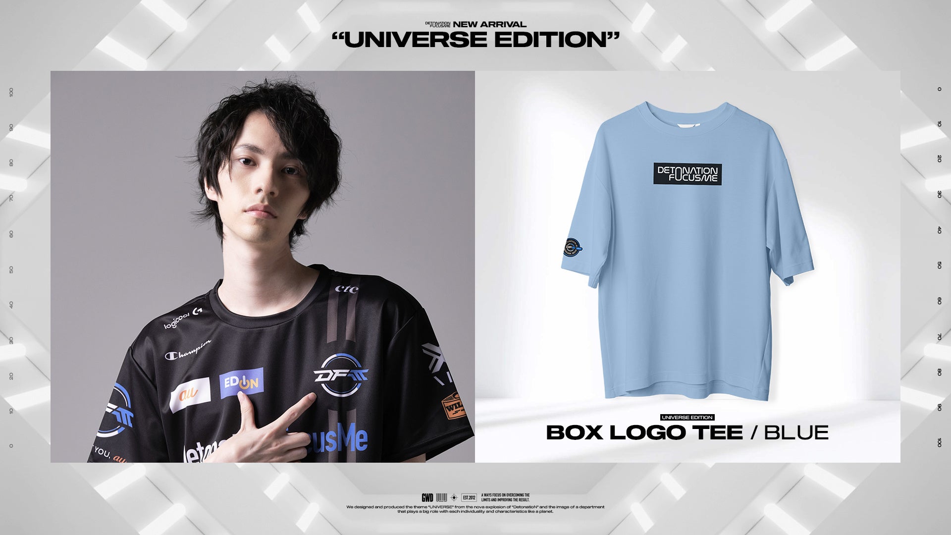 また、2023年3月11日(土)、12日(日)の二日間で開催される福岡最大級のeスポーツイベント「GATE」に、DetonatioN FocusMe所属のネフライトが出演することが決定いたしました。イベント限定色のBOX LOGO TEE(ブルー)を、ネフライトの直筆サイン入りで数量限定販売いたします。