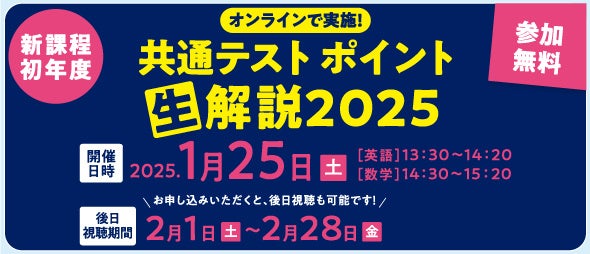 [高1・2生対象]~共通テスト本番の問題を解いたら、自宅で解説を見よう!参加無料~「大学入学共通テスト ポイント生解説2025」のご案内