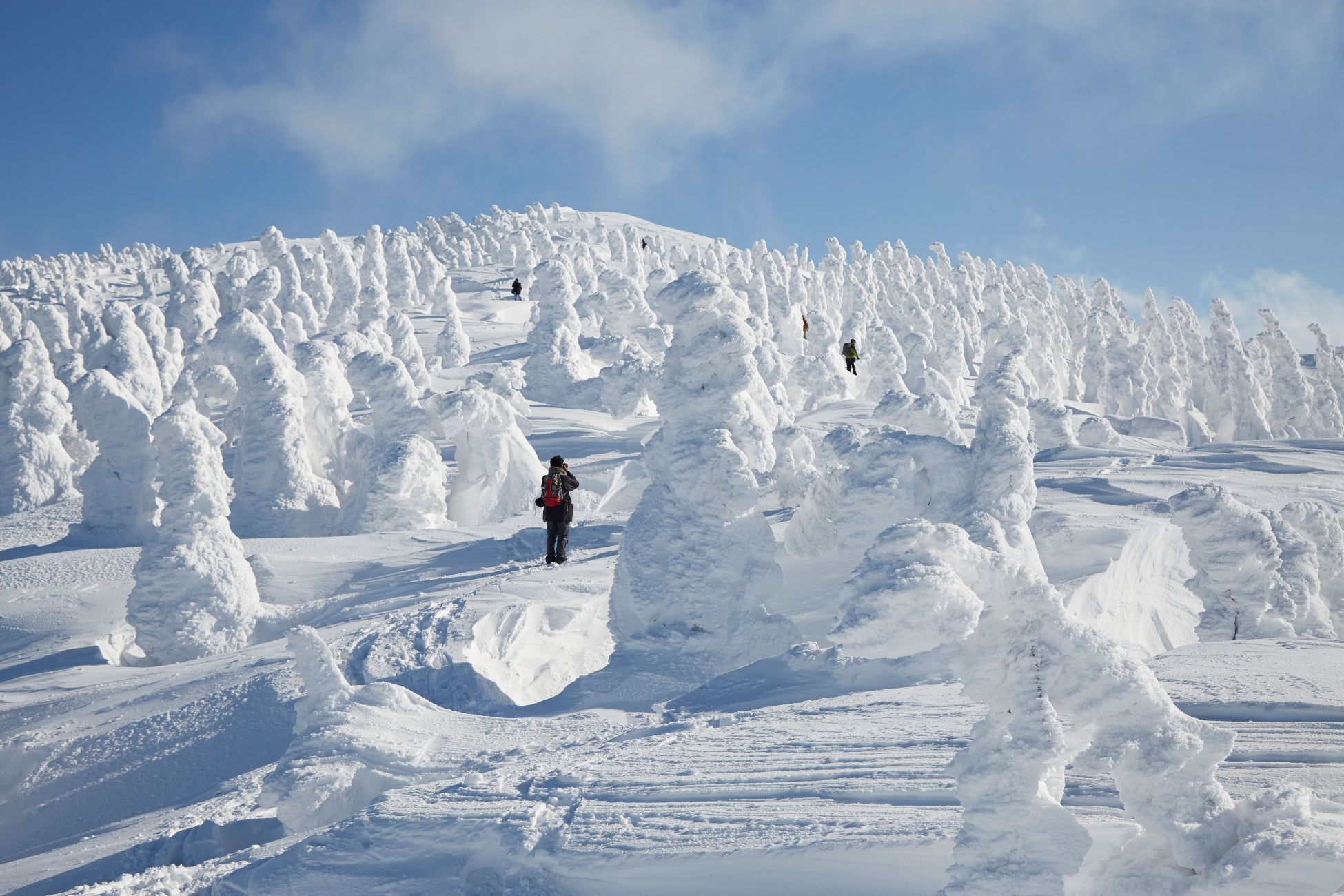 山形県の蔵王や青森県の八甲田と並び、日本三大樹氷観賞地の一つに数えられている「森吉山の樹氷」。「森吉山の樹氷」は、観賞エリアである樹氷平近くまで、6人乗りのゴンドラで移動することができるため、プライベート感を味わいながらゆっくりと観賞できることが特徴です。山頂駅舎には、森吉山ビジターセンター「ぷらっと」も整備されており、室内から気軽に樹氷を楽しむことができます。樹氷観賞期間中は、樹氷スタッフが常駐し、長靴、スノーシュー、ストック等を貸し出すほか、樹氷形成の仕組みを解説する樹氷教室を開催しています。是非とも森吉山が造り出す自然の芸術品の素晴らしさをご体感ください。