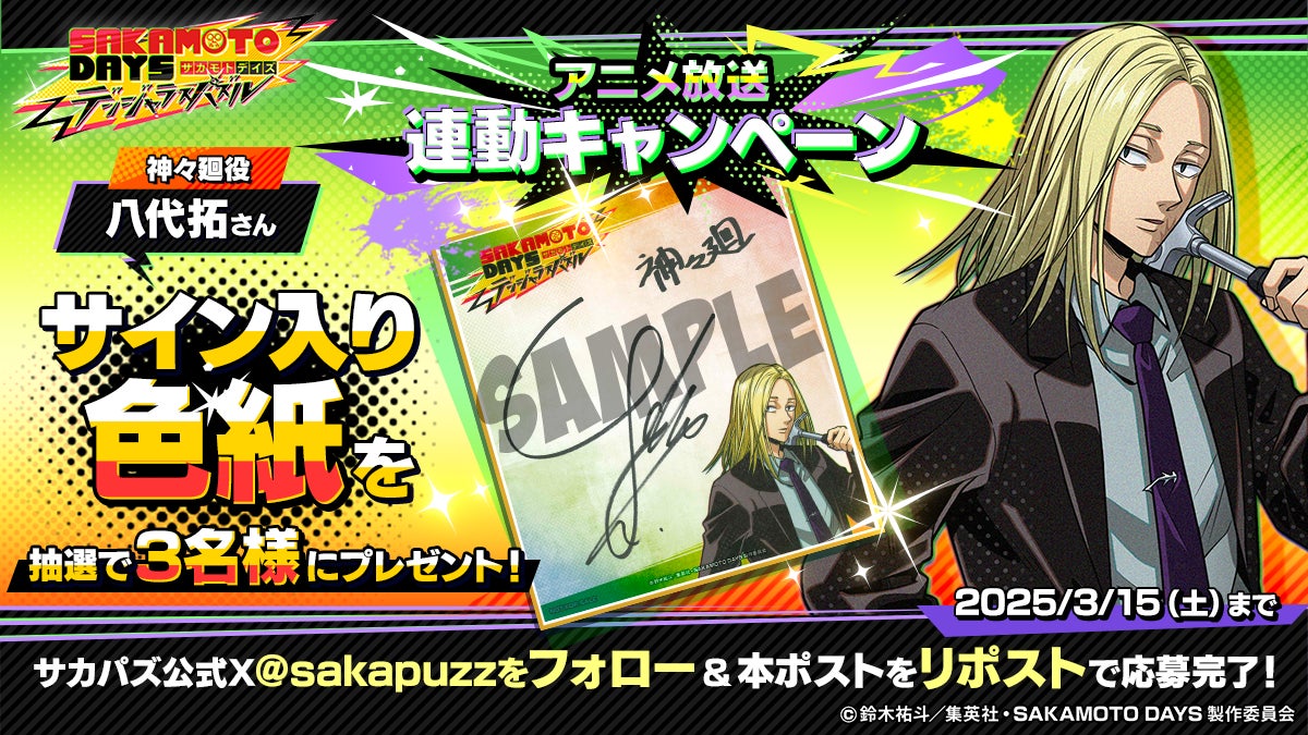 神々廻役・八代拓さんのサイン色紙が当たる!? 『SAKAMOTO DAYS デンジャラスパズル』リリース前プレゼントキャンペーン実施!