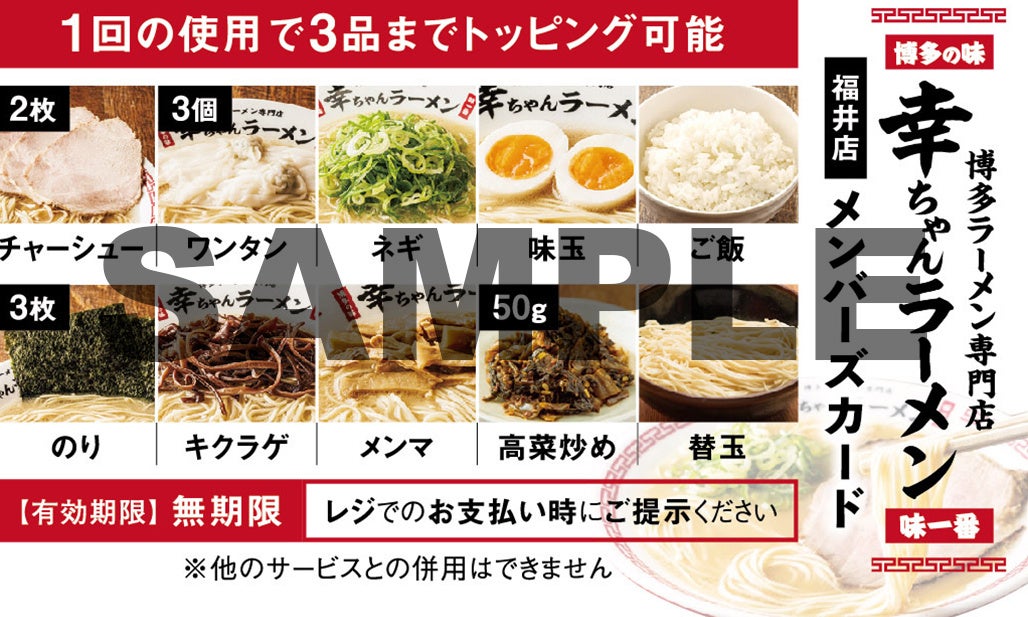 ※メンバーズカードは幸ちゃんラーメン福井店のみでのご使用可能。